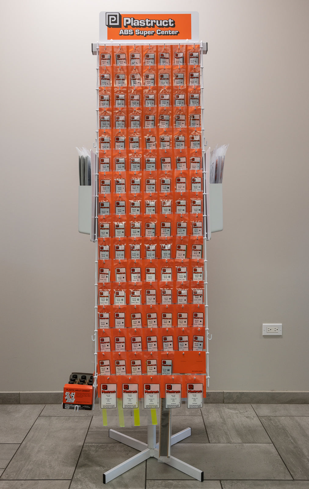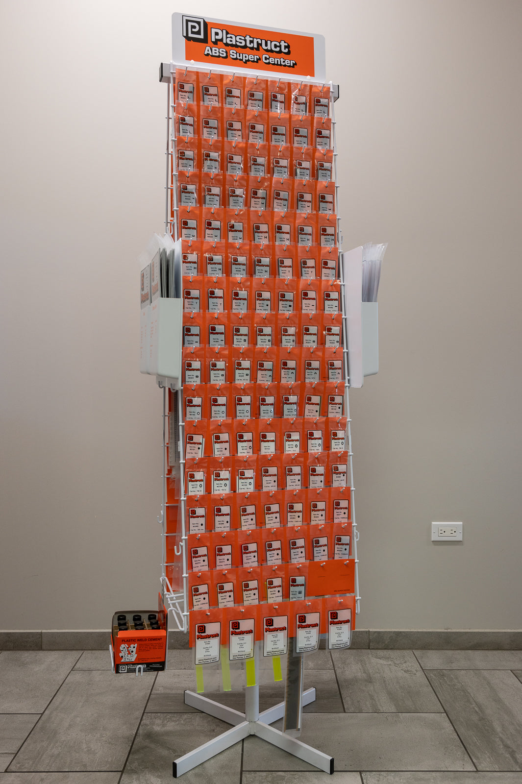 The display contains ABS plastic structural shapes, ABS and Acrylic Plastic Plain and Fluorescent Sheet, Clear and Fluorescent colored Acrylic Rod, Printed Paper Patterned Sheet and Plastic Mirror Sheet in 10 different colors.